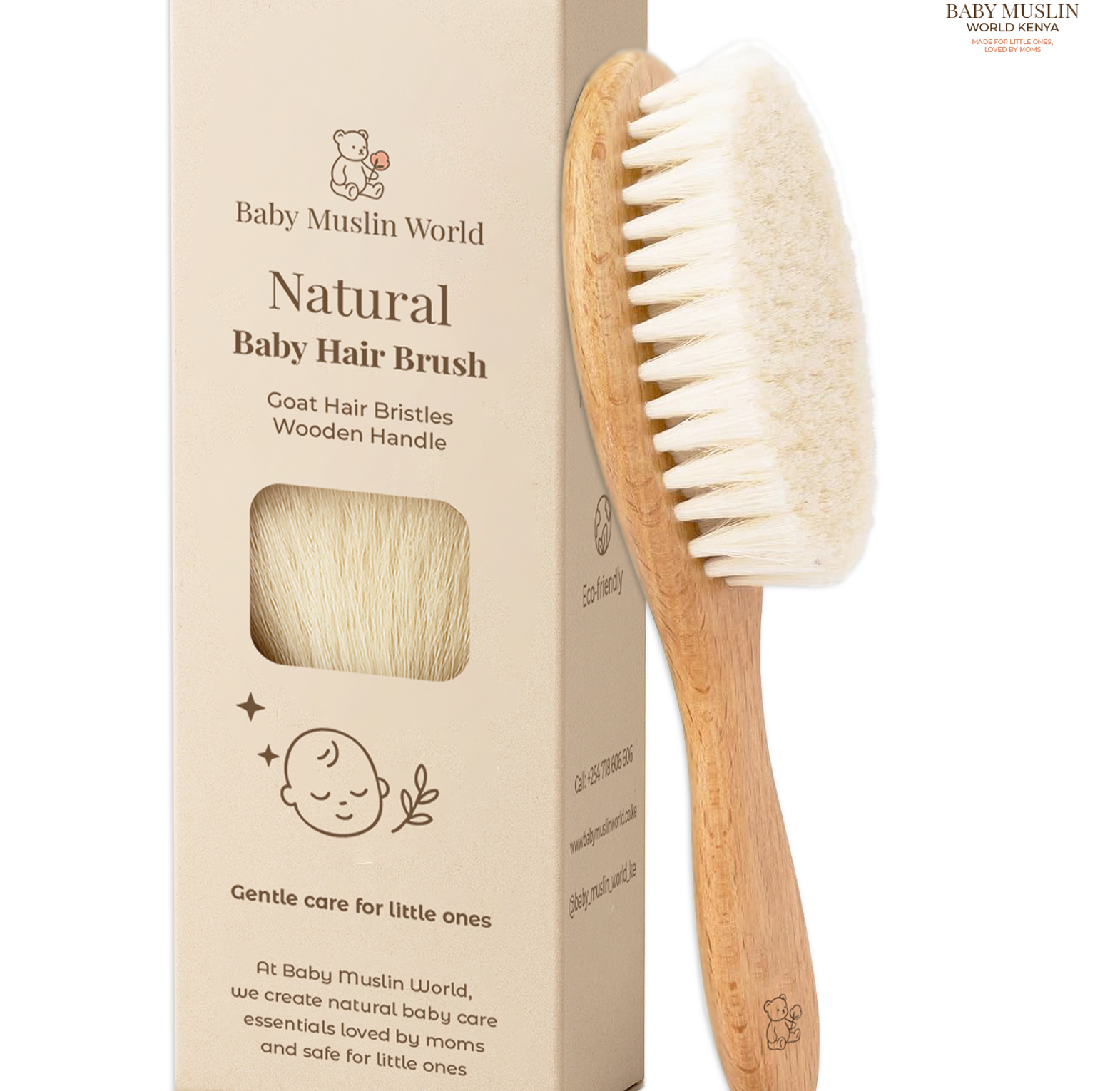 Give your little one the gentlest start with our Natural Baby Hair Brush, crafted with ultra-soft goat hair bristles and a smooth, natural wooden handle. This brush is designed specifically for newborns, infants, and toddlers, offering a soothing grooming experience that's safe even for the most delicate baby skin.
