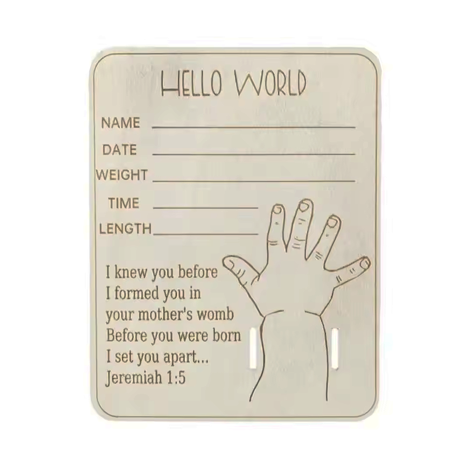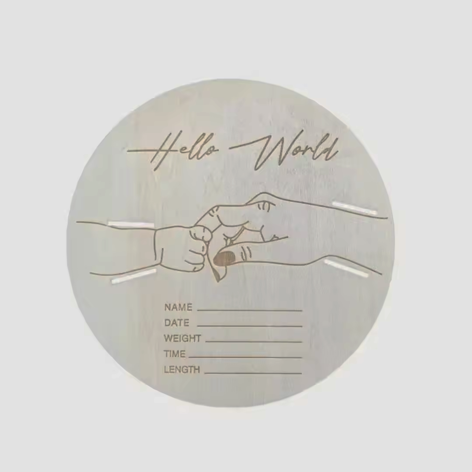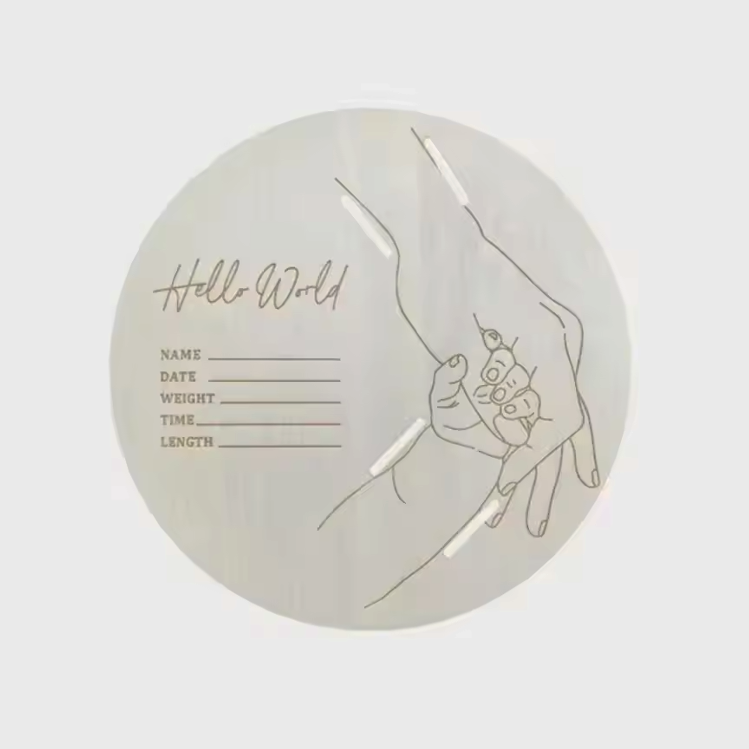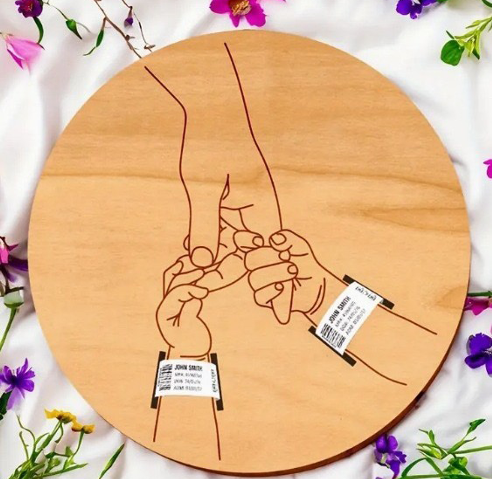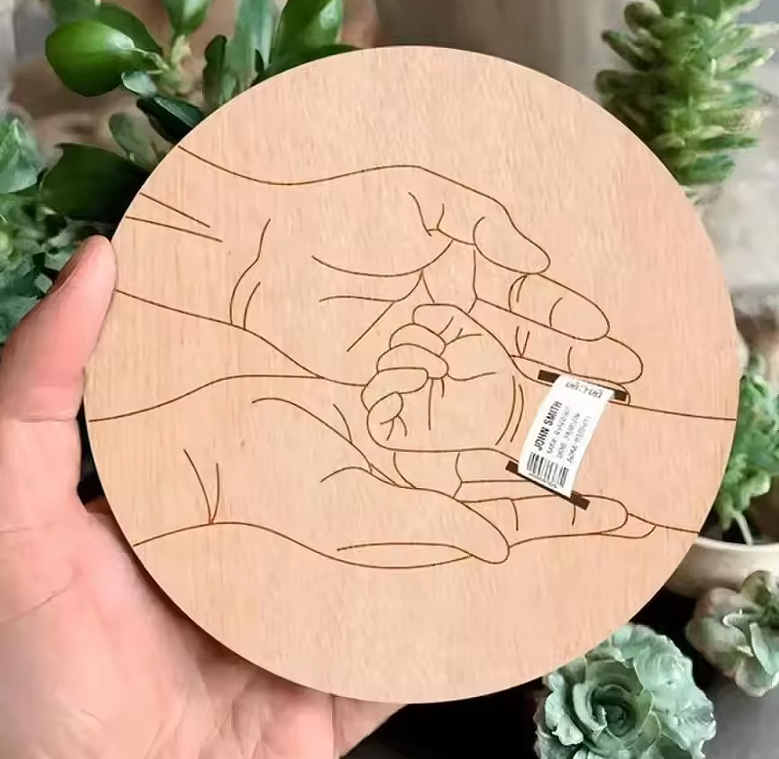Crafted from smooth, premium wood and engraved with an elegant line-art illustration of a parent and baby's hands, this plaque brings warmth, emotion, and artistry to any space.