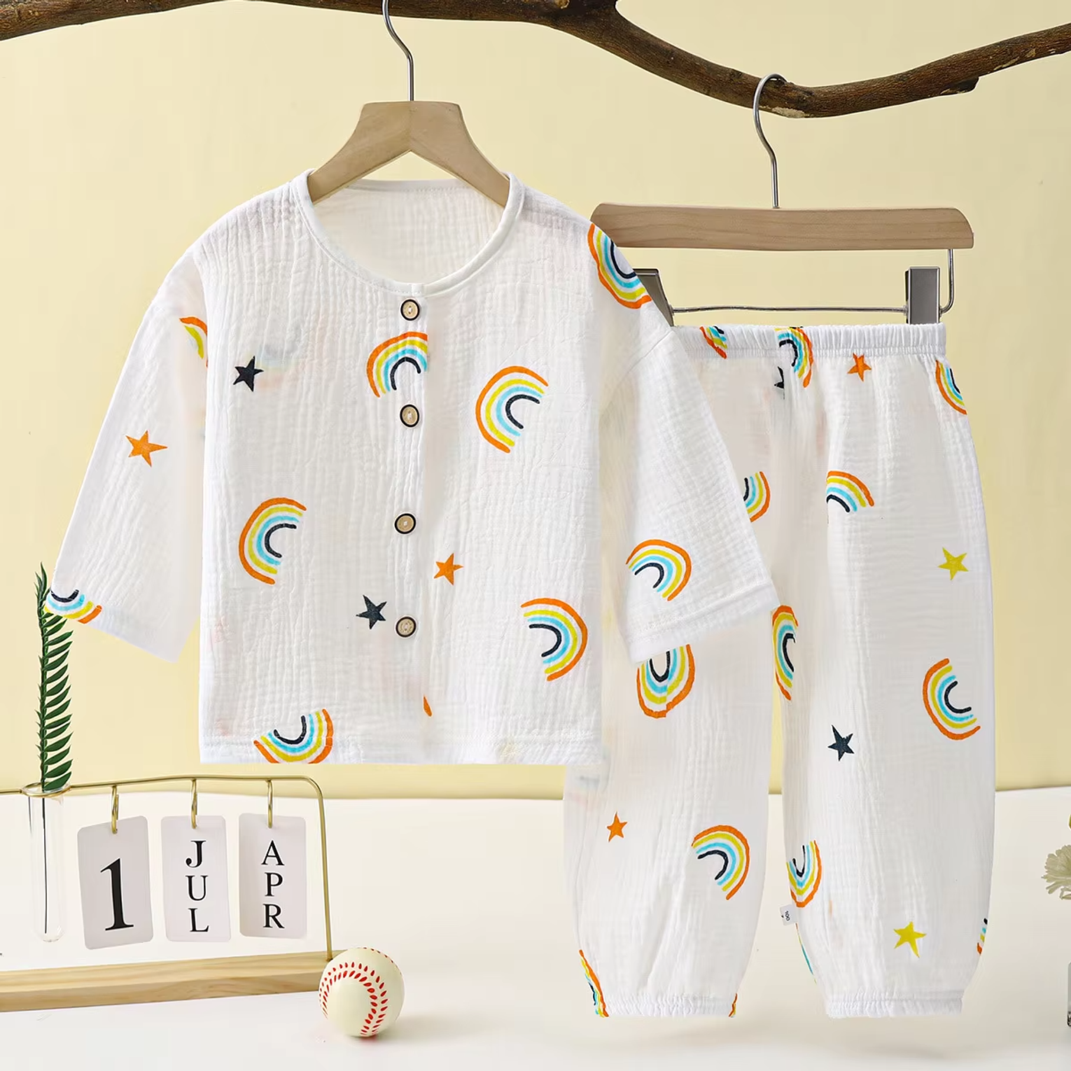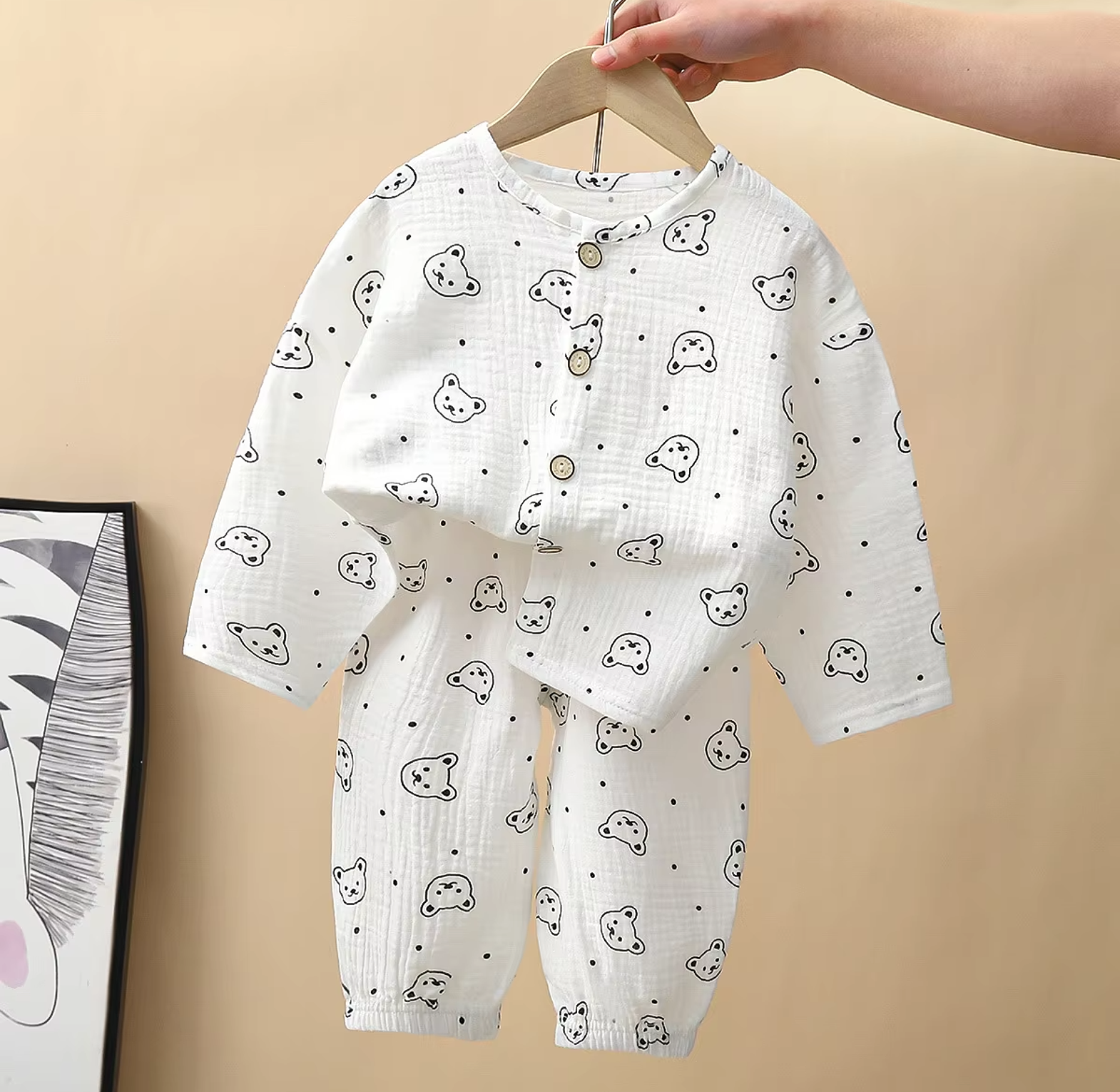 Made from 100% breathable muslin cotton, these pajamas are designed to keep little ones comfortable through the night. Lightweight yet warm, they are soft on delicate skin and get even softer with every wash. Perfect for bedtime routines, naps, or lounging, they are a must-have sleepwear essential for your baby’s wardrobe.