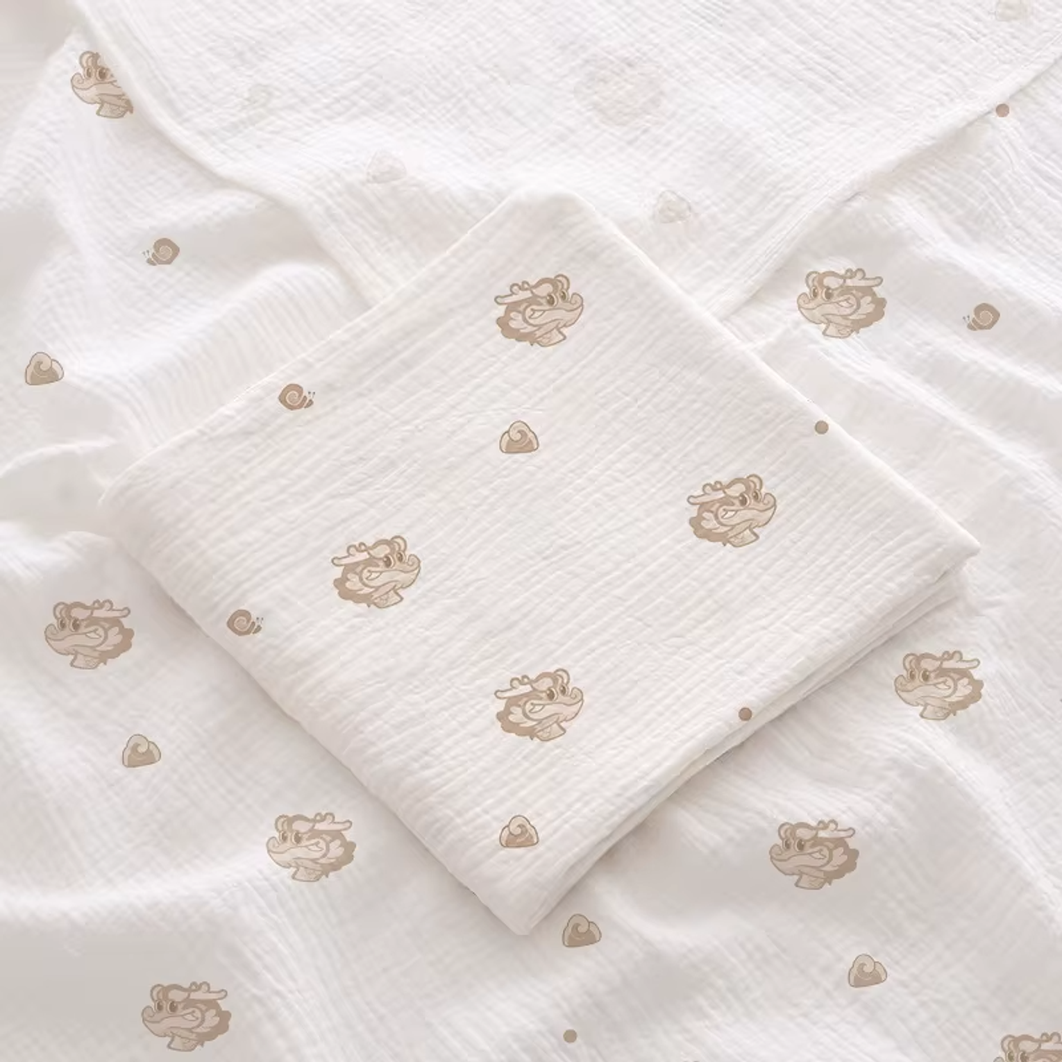 Measuring 100 × 100 cm, this versatile wrap is ideal for swaddling, stroller covering, nursing cover, or cozy cuddles.