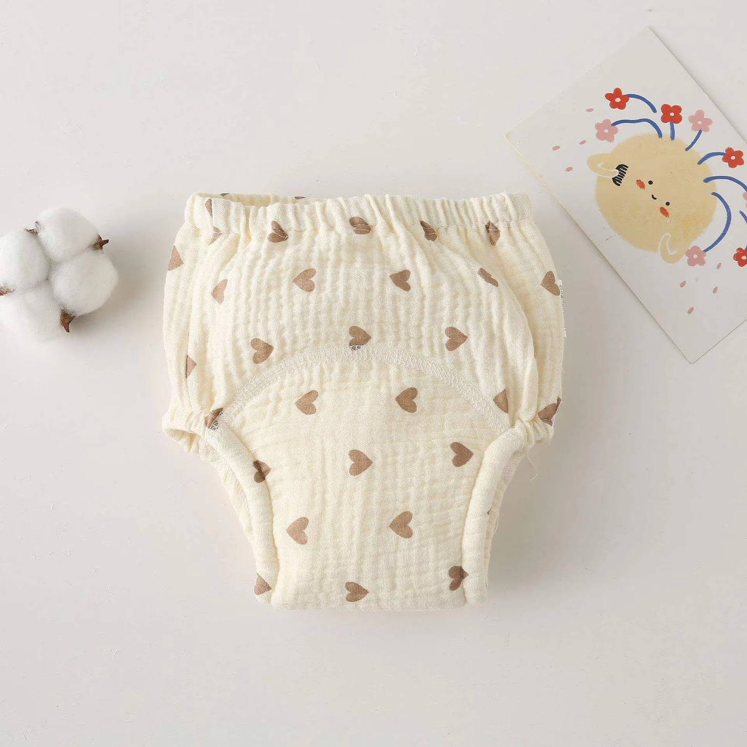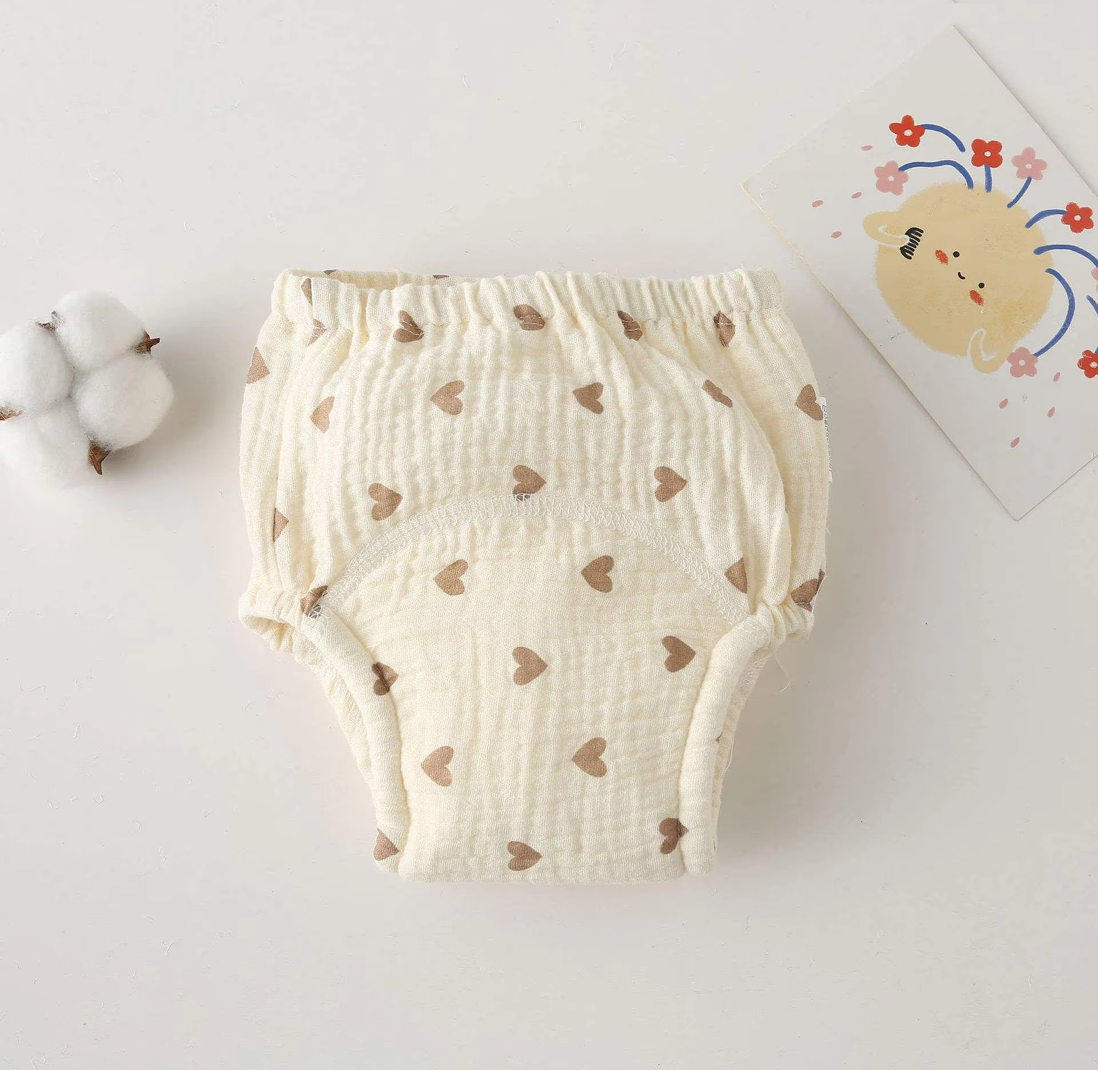 The inner lining provides gentle absorbency for small accidents while maintaining a dry, airy feel. The stretchy waistband and snug leg openings ensure a perfect fit without irritation. Plus, the adorable brown heart pattern adds a playful touch every mom will adore!