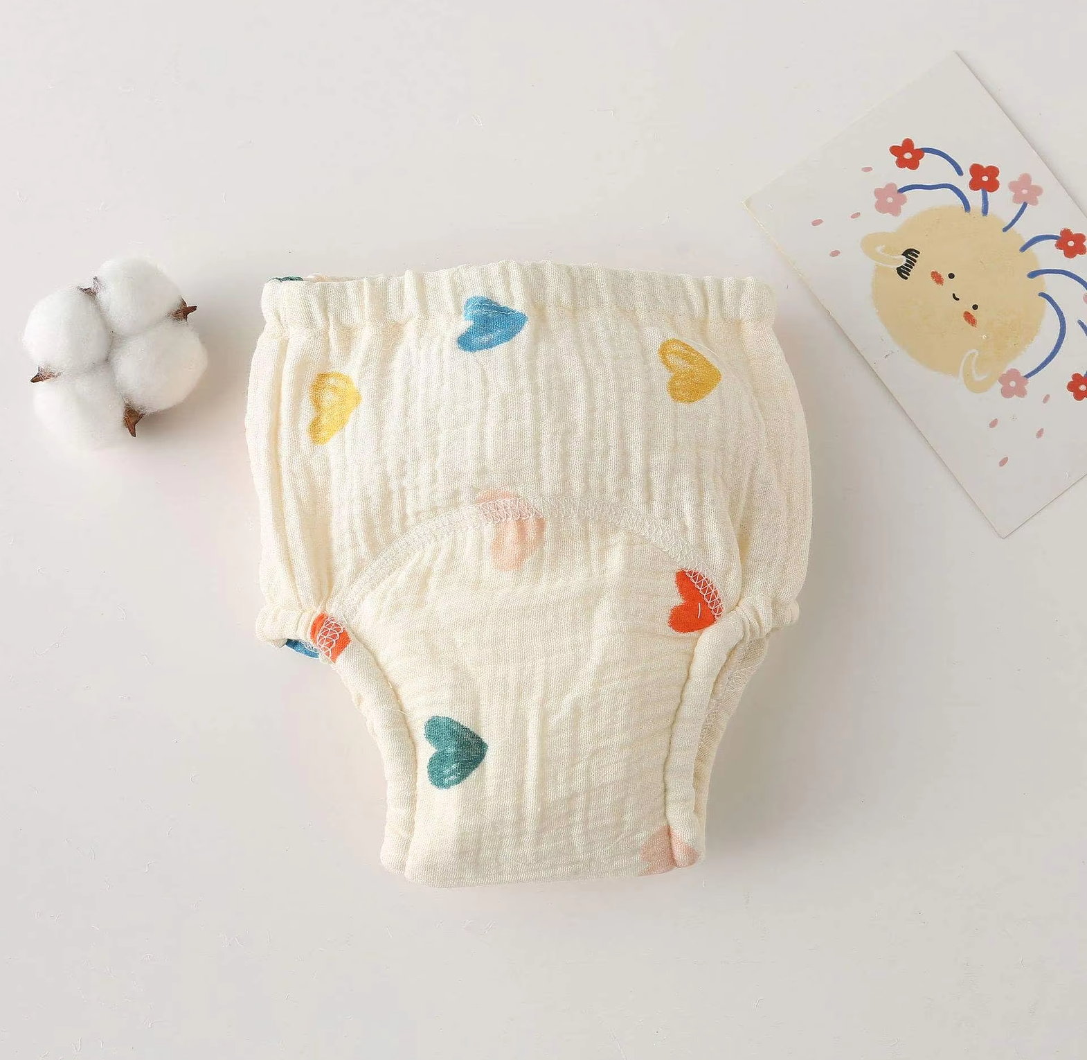The Brown Hearts Muslin Potty Training Pants are designed with love to support your toddler’s transition from diapers to underwear, providing comfort and a natural fit. Made from 100% breathable muslin cotton, these training pants are incredibly soft on delicate skin, helping your baby stay cool, comfy, and confident all day.