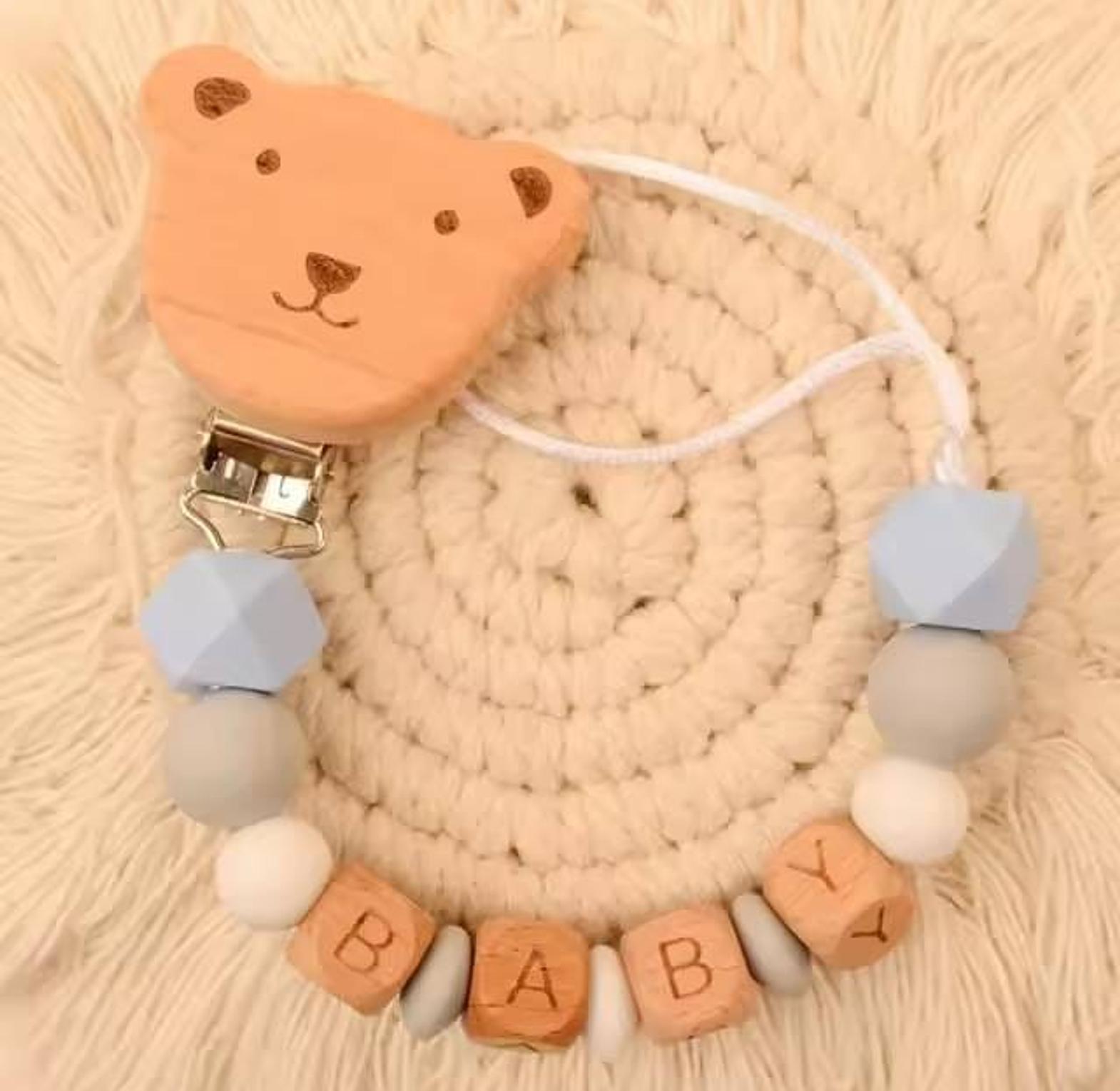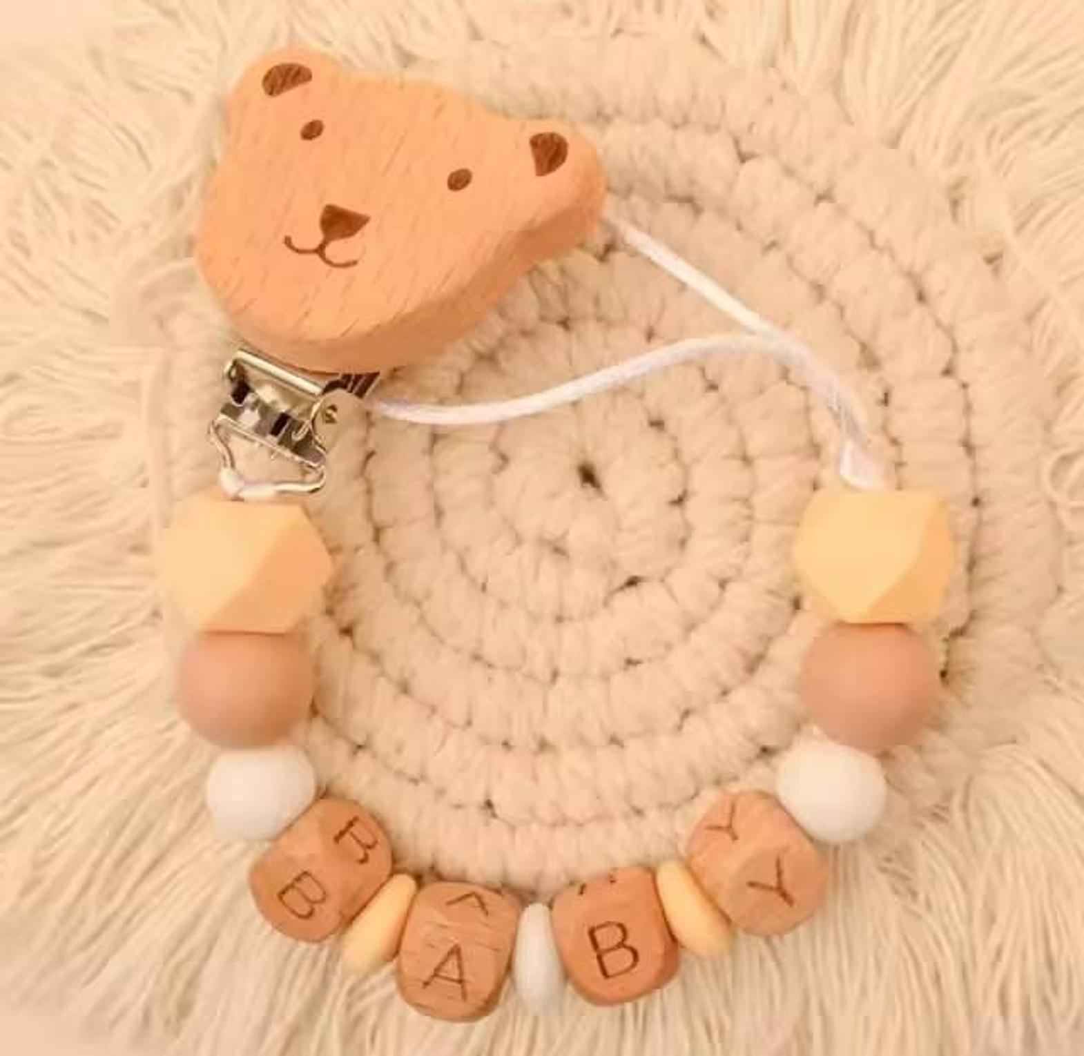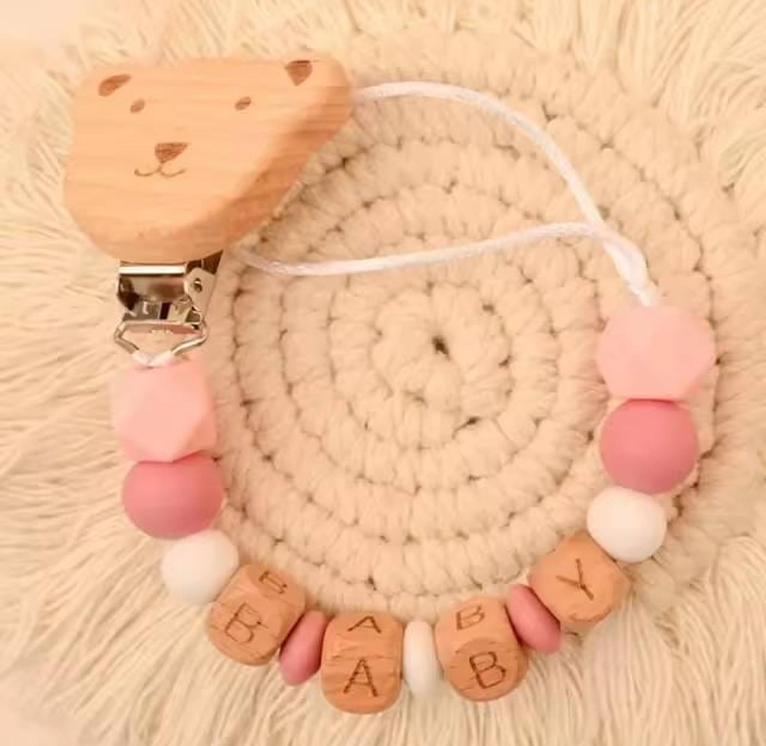 Keep your baby’s pacifier always within reach with our Silicone & Wood Pacifier Holder, designed for both safety and style.