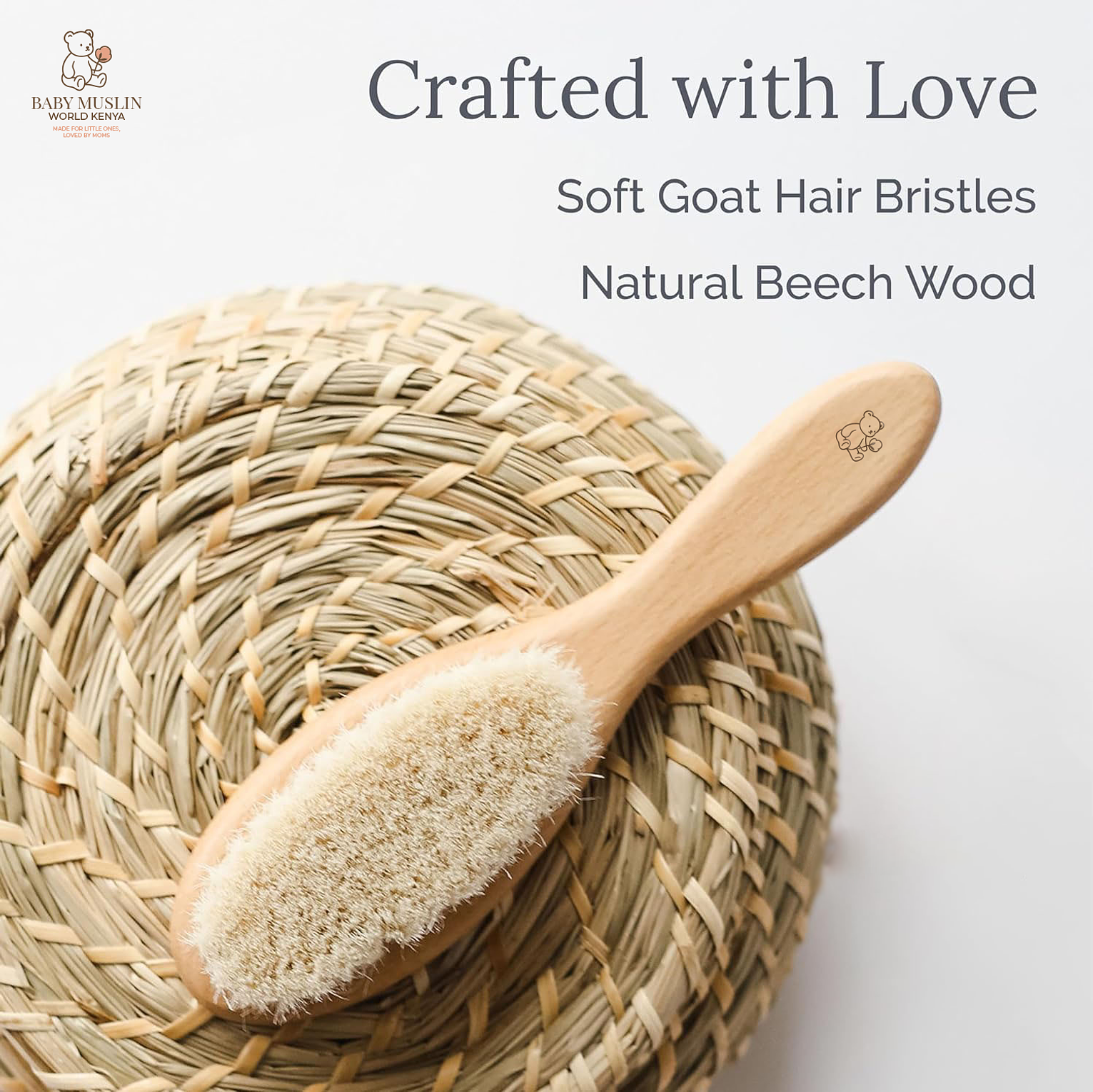 Give your little one the gentlest start with our Natural Baby Hair Brush, crafted with ultra-soft goat hair bristles and a smooth, natural wooden handle. This brush is designed specifically for newborns, infants, and toddlers, offering a soothing grooming experience that's safe even for the most delicate baby skin.