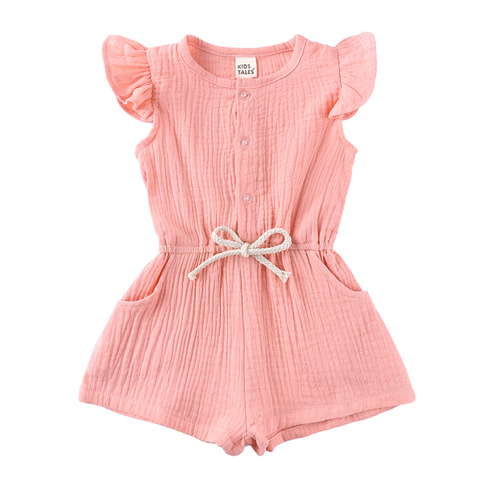 The FlutterPlay Romper is designed for little ones who love comfort and style. Made from 100% breathable muslin cotton, it keeps your baby cool and cozy throughout the day. Featuring flutter sleeves, button details, and a comfy waist tie, this romper is perfect for playdates, family outings, or lounging at home. A timeless essential for any baby wardrobe.