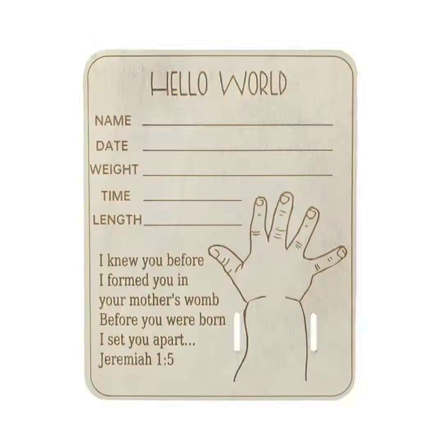 Crafted from smooth, premium wood and engraved with an elegant line-art illustration of a parent and baby's hands, this plaque brings warmth, emotion, and artistry to any space.