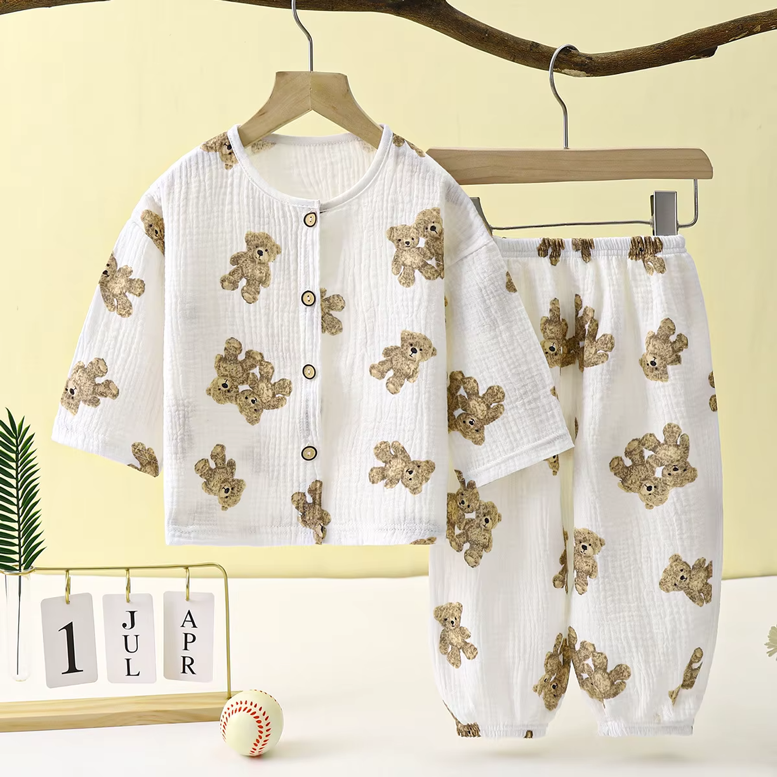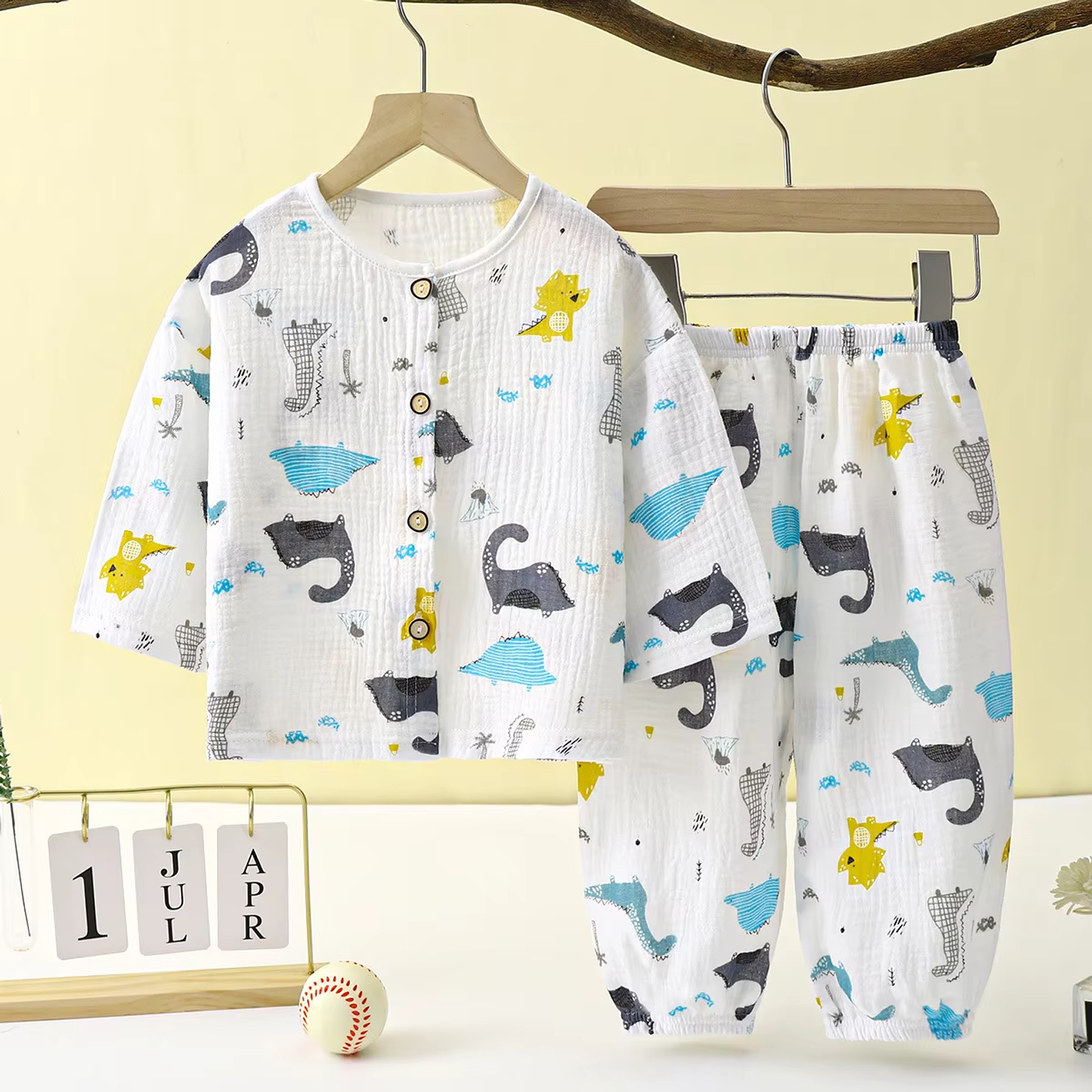 Made from 100% breathable muslin cotton, these pajamas are designed to keep little ones comfortable through the night. Lightweight yet warm, they are soft on delicate skin and get even softer with every wash. Perfect for bedtime routines, naps, or lounging, they are a must-have sleepwear essential for your baby’s wardrobe.