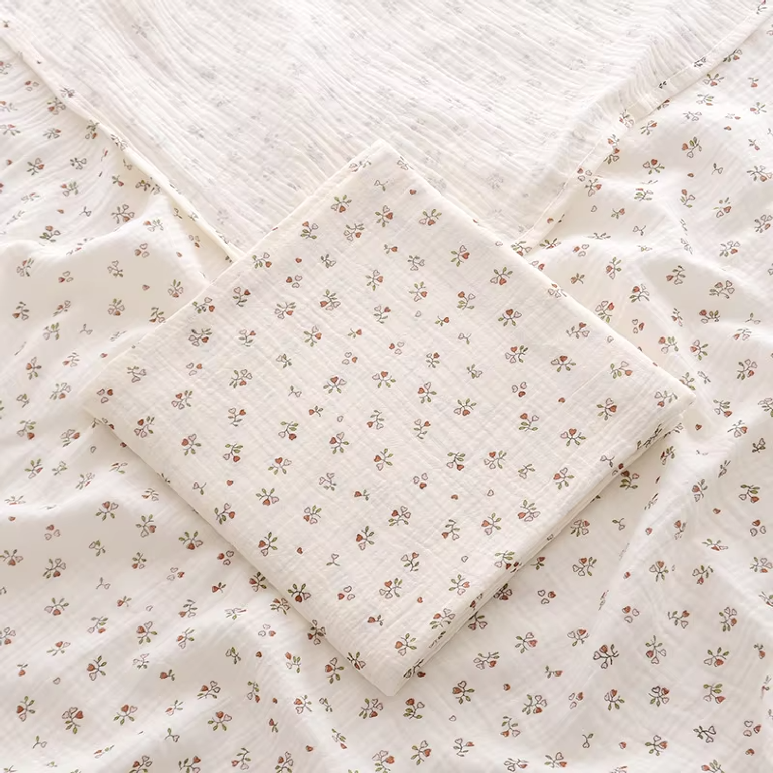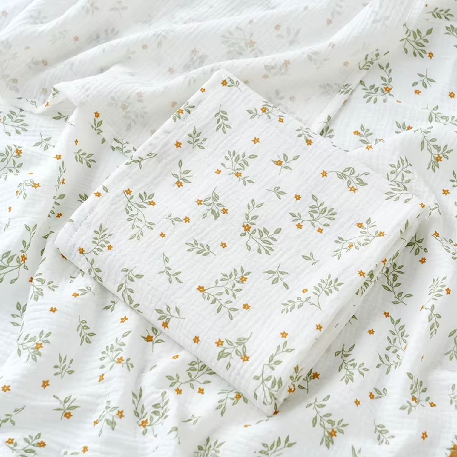 The delicate floral prints adds a touch of timeless charm to your baby’s essentials, while the breathable muslin fabric ensures your little one stays cool, soft, and snug all day long.