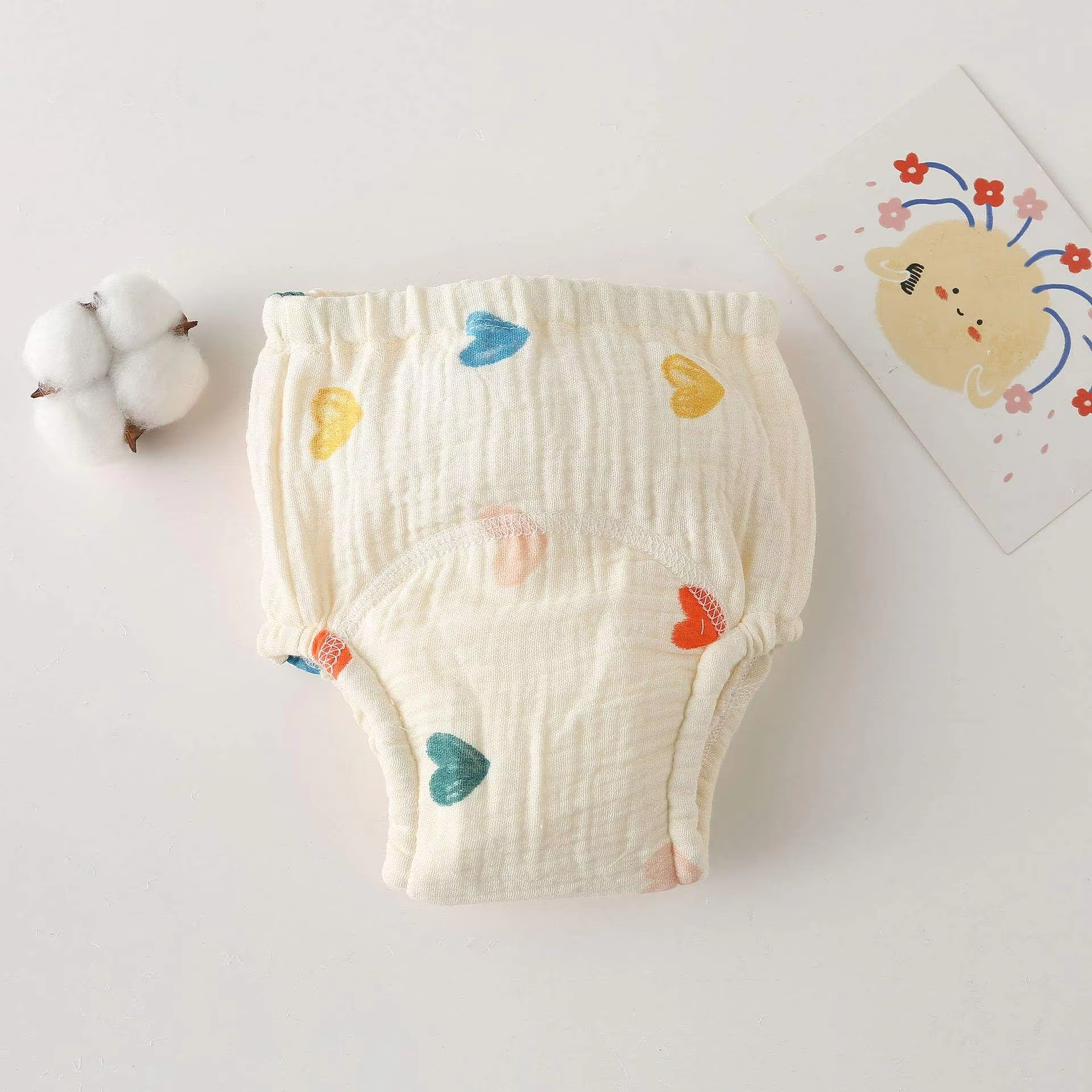 The Brown Hearts Muslin Potty Training Pants are designed with love to support your toddler’s transition from diapers to underwear, providing comfort and a natural fit. Made from 100% breathable muslin cotton, these training pants are incredibly soft on delicate skin, helping your baby stay cool, comfy, and confident all day.