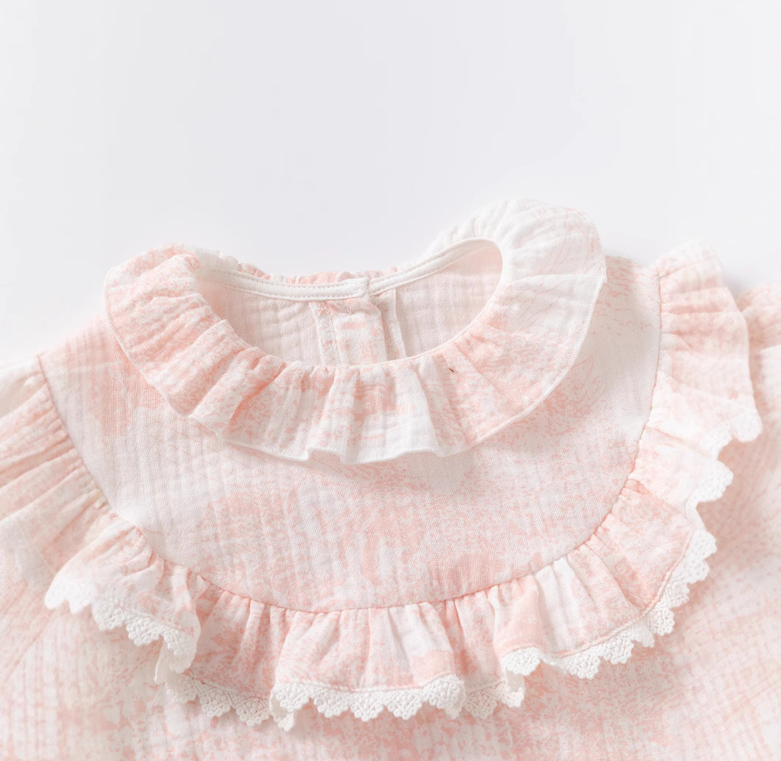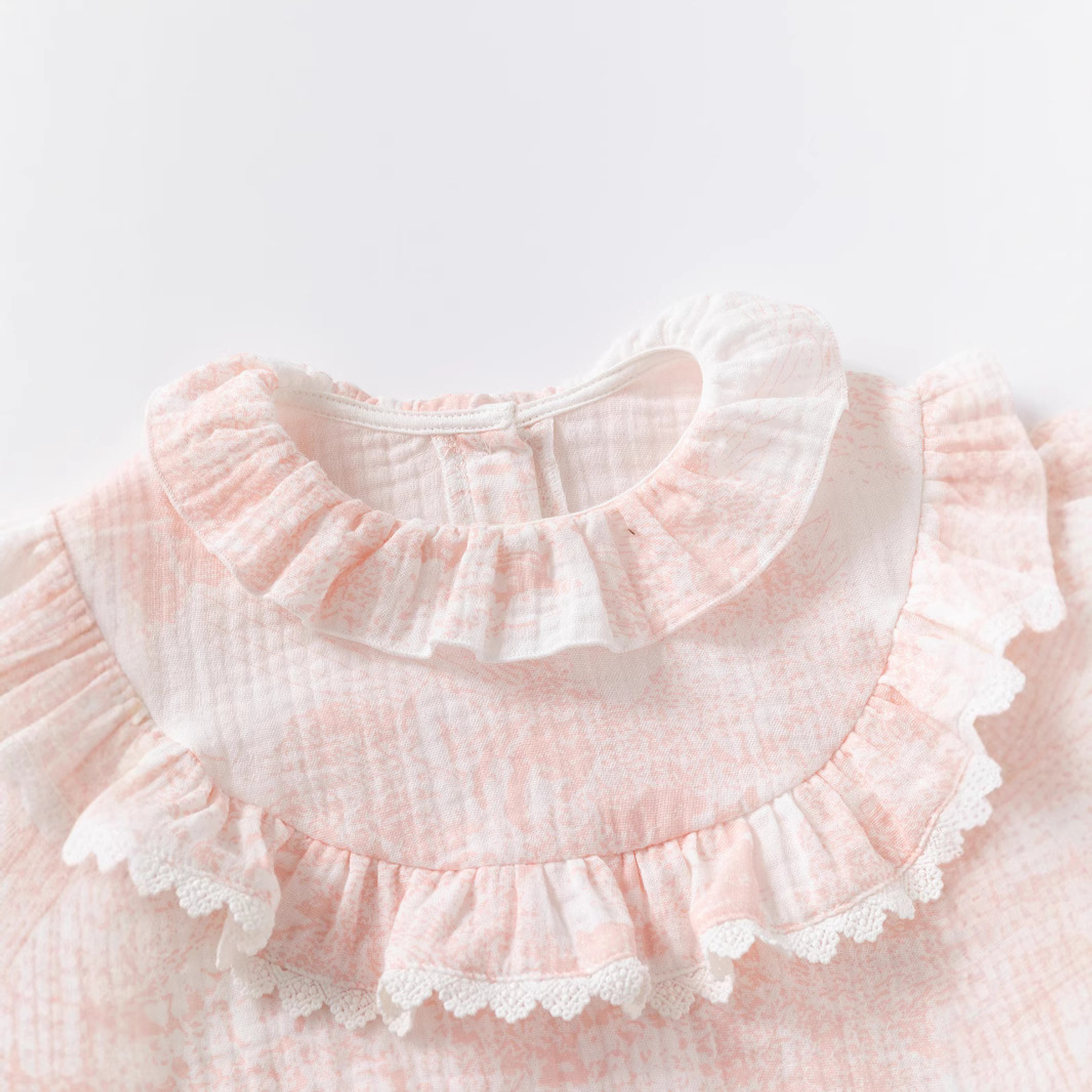 Crafted from lightweight, breathable muslin cotton, this romper is gentle on delicate newborn skin and allows airflow to keep your little one cool and comfortable throughout the day. The soft pink petal tone adds a sweet, timeless touch while maintaining a calm and minimalist look.