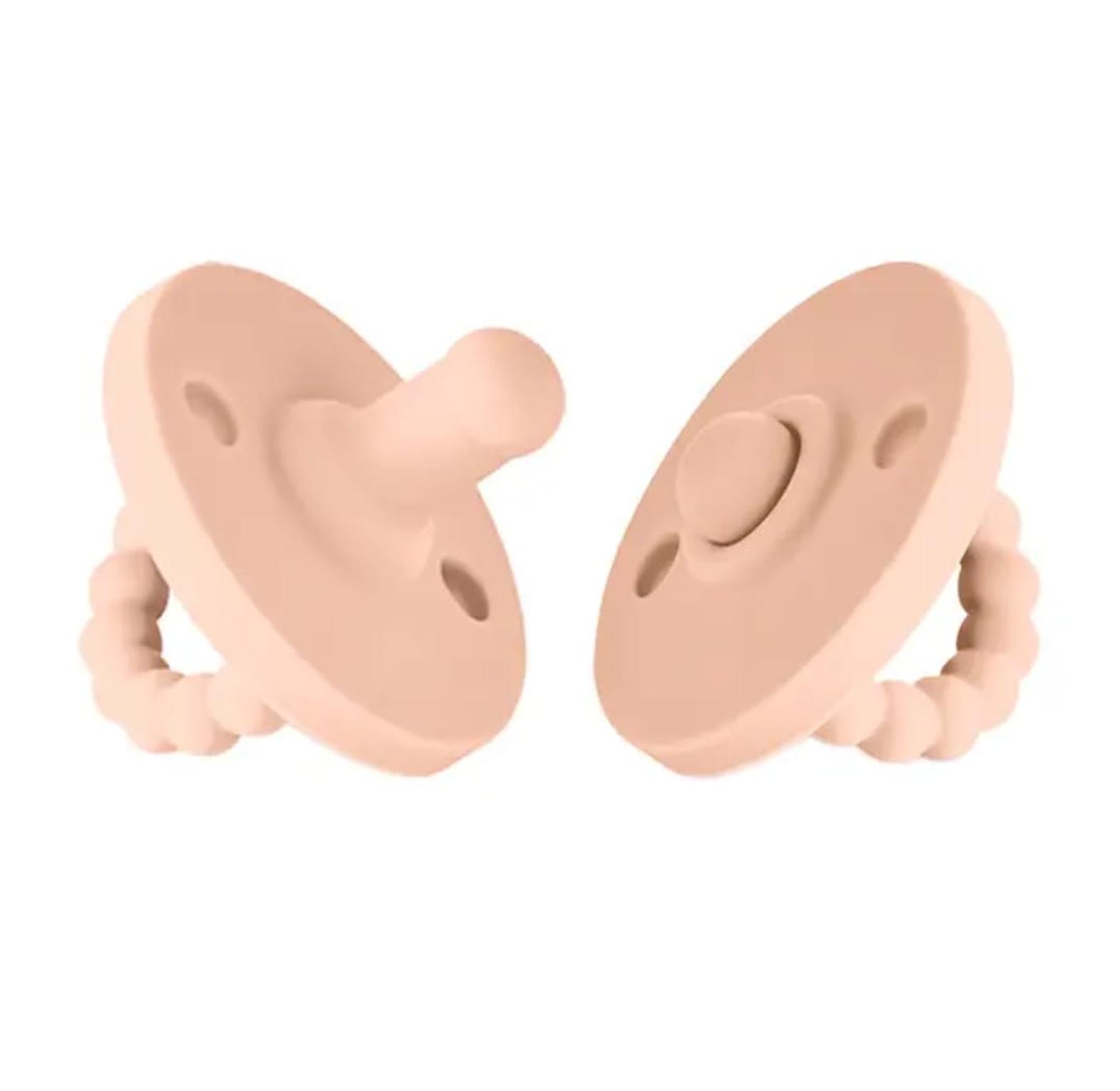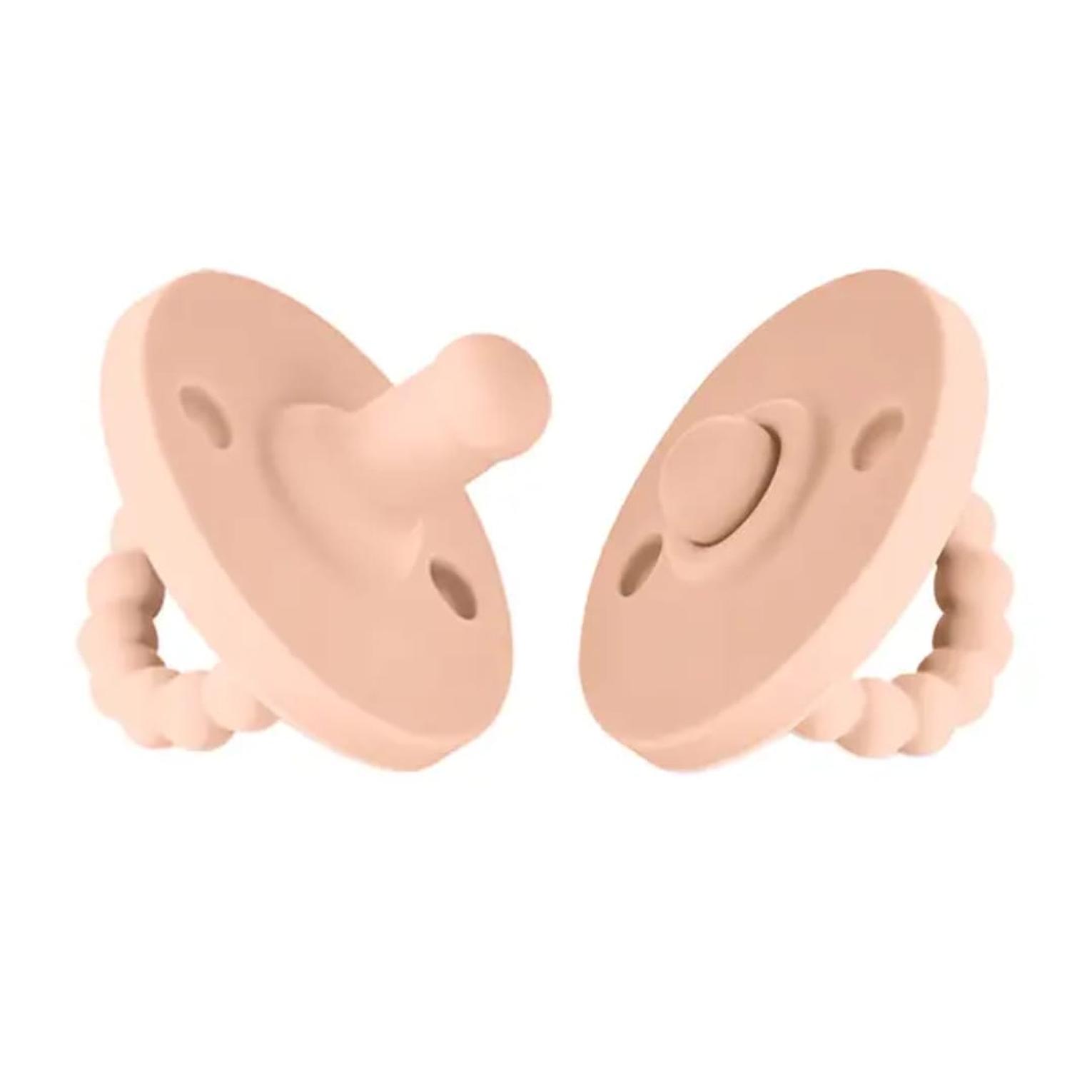Designed with a round, breathable shield, these pacifiers prevent moisture buildup and are gentle on the baby’s delicate skin. The ergonomic nipple shape supports natural sucking and promotes healthy oral development, while the beaded handle is easy for tiny fingers to grasp, encouraging the development of early motor skills.